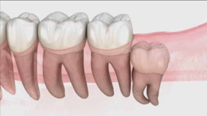 Ząb częściowo zatrzymany, nagryzanie na kaptur dziąsłowy